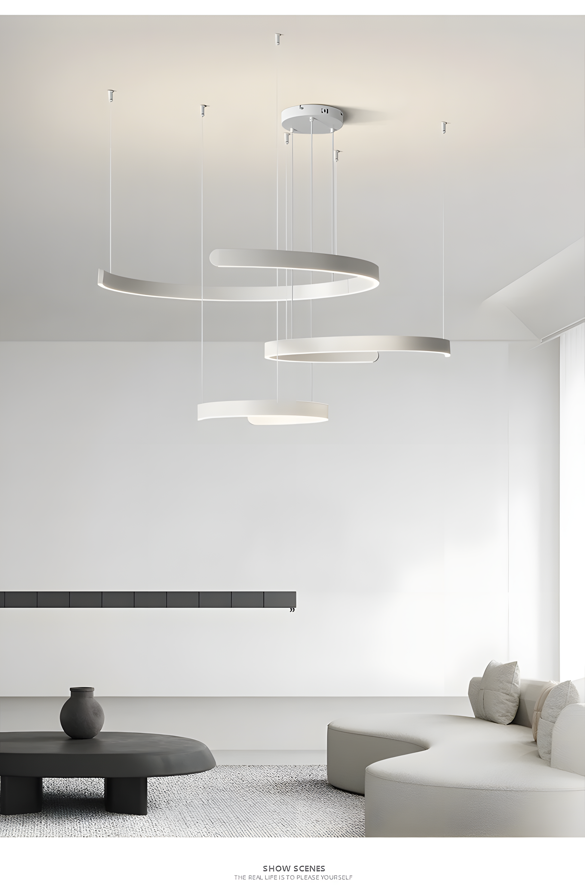 The Sira pendant light features integrated LED chips, providing a luminous range from 2,000 to 82,000 lumens. The dimmable function allows you to adjust the lighting to suit any occasion, whether you're hosting a dinner party, relaxing with a book, or creating a cozy ambiance. Available in three sizes, from 15.7 inches to 31.5 inches in diameter, Sira fits beautifully into spaces from intimate bedrooms to expansive dining areas.