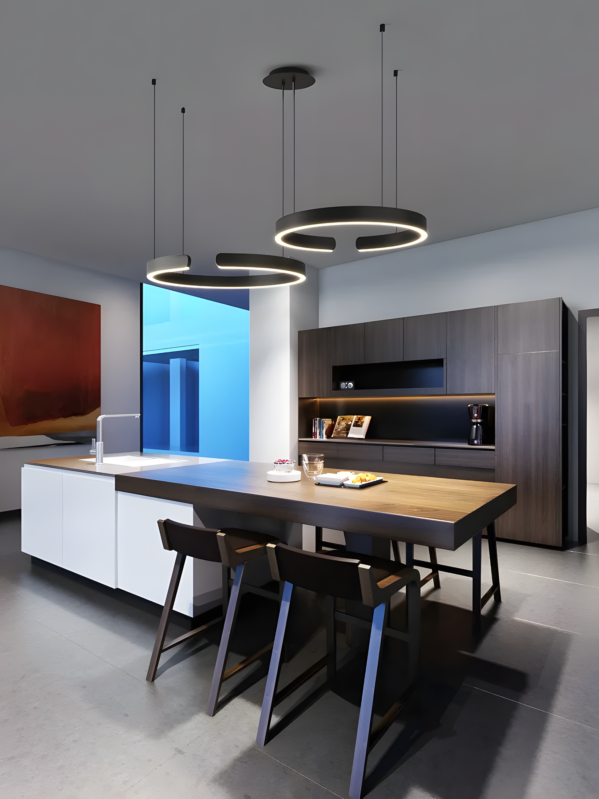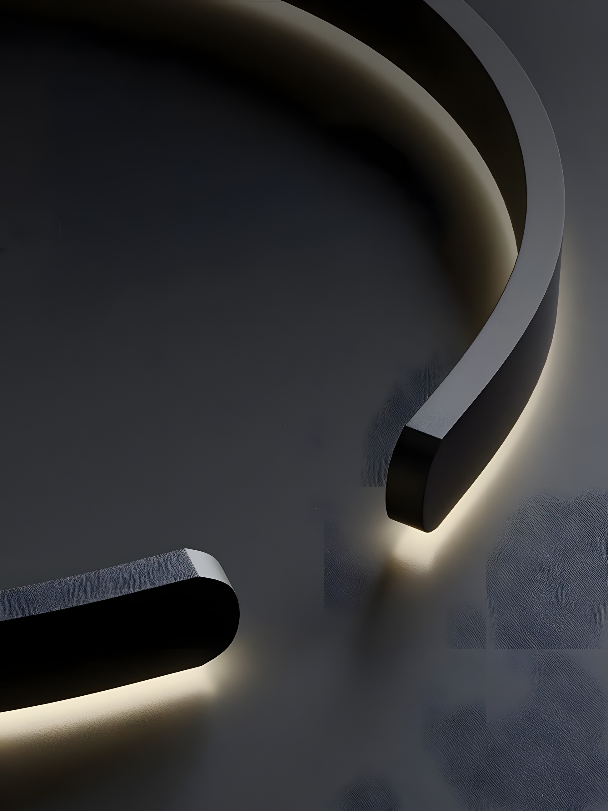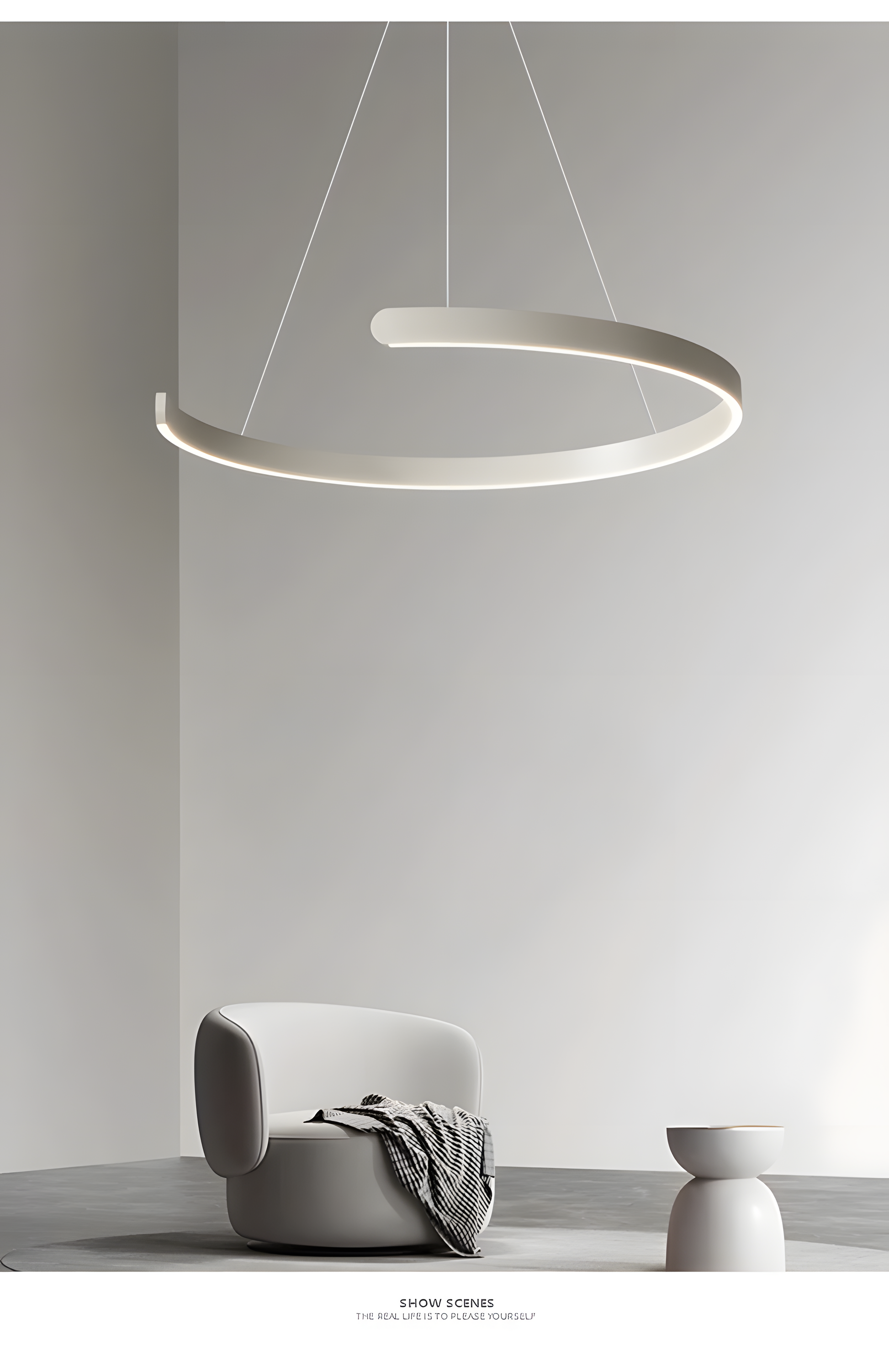 - Modern minimalist design with a circular, semicircular ring shape