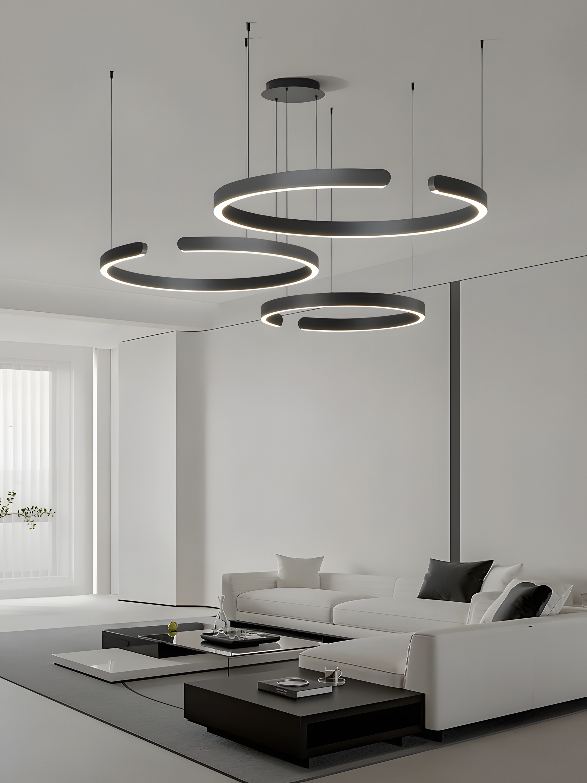 Sira is more than a light fixture; it’s a statement of contemporary sophistication. This pendant chandelier combines sleek aluminum construction with a minimalist, circular design that exudes modern elegance. Whether illuminating your living room, bedroom, or hotel lobby, Sira casts a striking yet soft glow, perfect for a variety of settings. The premium aluminum finish, available in black or white, is beautifully plated, adding a refined touch to its timeless form.